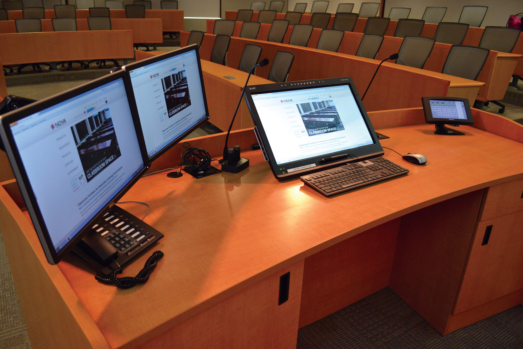 This Florida Atlantic Installation features a customized version of NOVA’s Computer Training Desks with iMod™ Wire Management Compartment, Contoured End Panels, and a Removable Perforated Metal Modesty Panel. Our Computer Training Desks are ideal for educational environments providing the functionality and configurations that are an absolute must in today's digital world and especially learning domains.